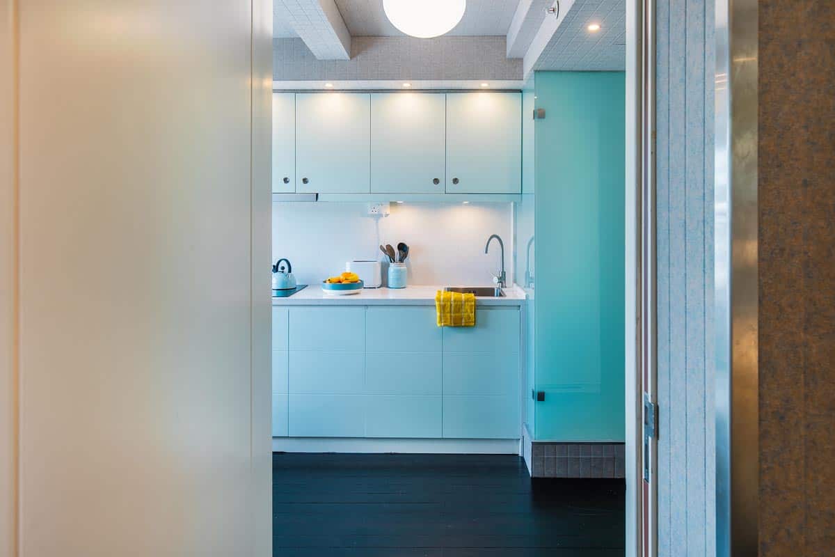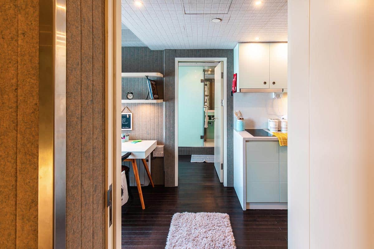 This is a larger en-suite studio with two bunk beds, a private bathroom and a private kitchenette.The studios are fully equipped with two bunk beds, a study space with a desk, a kitchenette, a private ensuite bathroom and plenty of storage space. Linen, towels and kitchen utensils are provided free. There is free Wi-Fi in each bedroom and throughout the building.